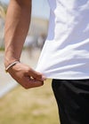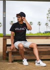 zig-zag VALENCIA TEE 赤と白のバレンシアロゴがアクセントのTシャツ。 刺繍ラインとぷっくりとしたエンボス加工のバレンシアでスタイリッシュながら遊び心のあるデザイン。 ベア天素材でストレッチの効いたサラっとした着心地です。 ※お届けから7日以内までは、サイズの変更が可能です。