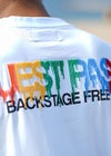 Rainbow GUEST PASS TEE バリエーション豊かなカラフルなデザインが目を引く夏らしいティーシャツが登場! フロント、バックのカラー部分は細かい歯ブラシ刺繍で施され、こだわりの詰まった1枚。 夏のシーズンには特にオススメのアイテムです。 ※セール期間中にてご注文頂いた方は、返品は致しかねます。 ご了承くださいませ。 ※お届けから7日以内までは、サイズの変更が可能です。