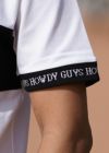 中央と首元・袖口に施された白黒のロゴが大人っぽい印象を与えてくれ、他とは違う一枚でスタイリングを楽しめます。