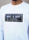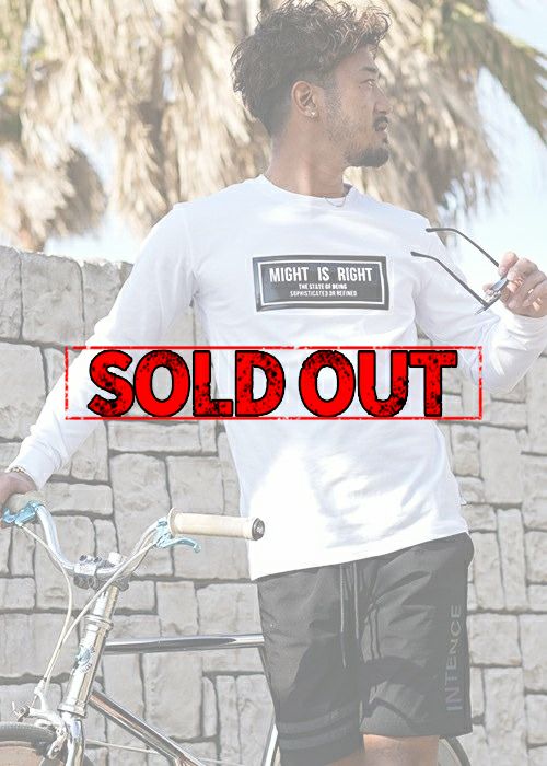 MIGHT IS RIGHT L/TEE ジェルプリントを施されたボックスデザイン。 型抜きをした"MIGHT IS RIGHT" シンプルなロゴでトレンド感を加えたことによりさりげなく周りと差をつける一枚! ※お届けから7日以内までは、サイズの変更が可能です。