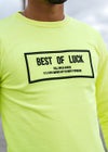 BEST OF LUCK L/TEE ぷっくりしたウレタン刺繍でデザインされたボックスロゴのロンティーが登場! アダムスジャグラー定番のネオンカラーを使い、シンプルながらワンポイントアクセントになるアイテムです。 ※お届けから7日以内までは、サイズの変更が可能です。