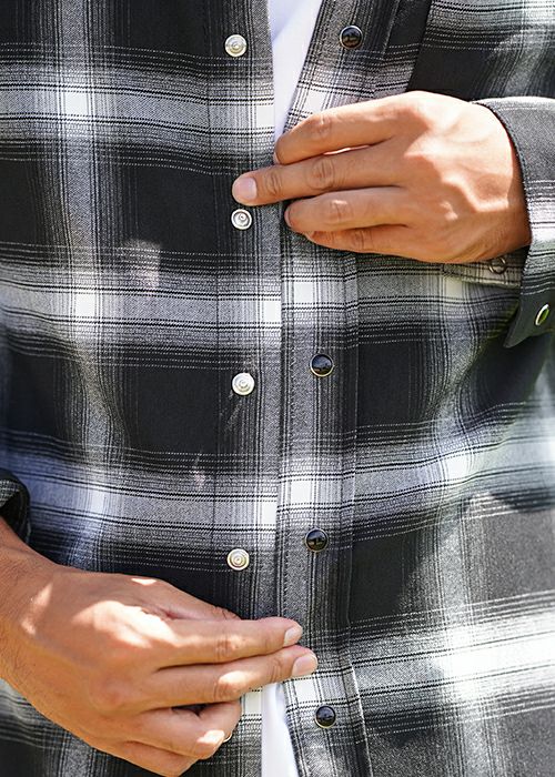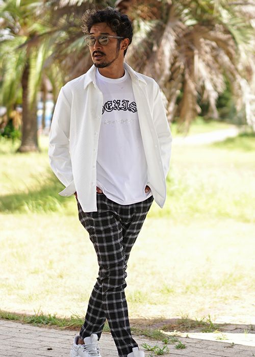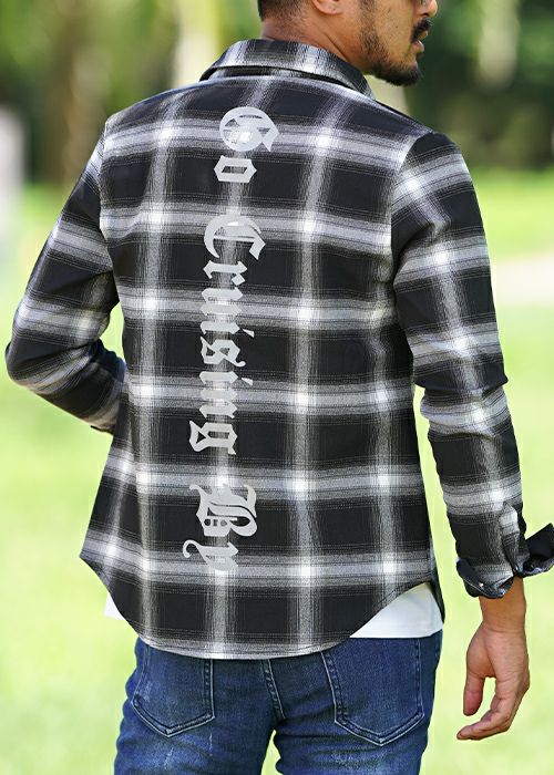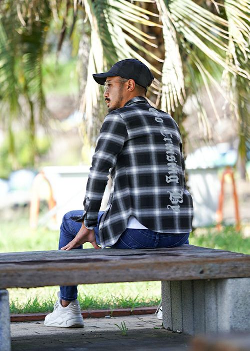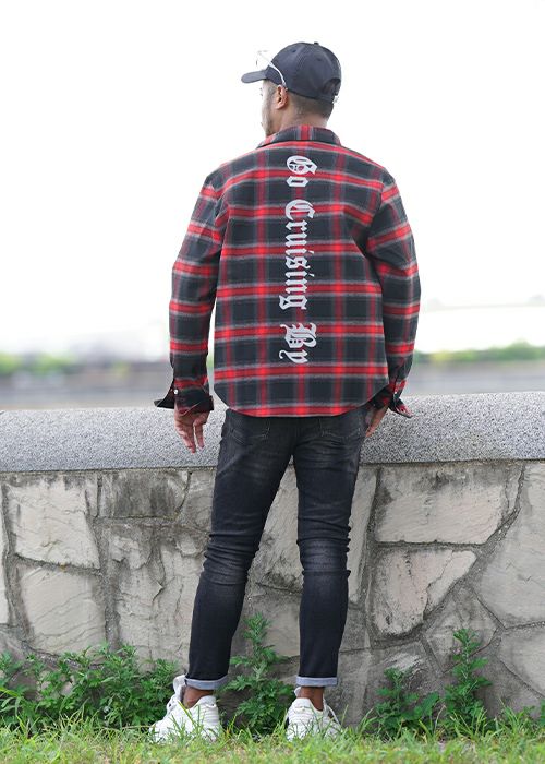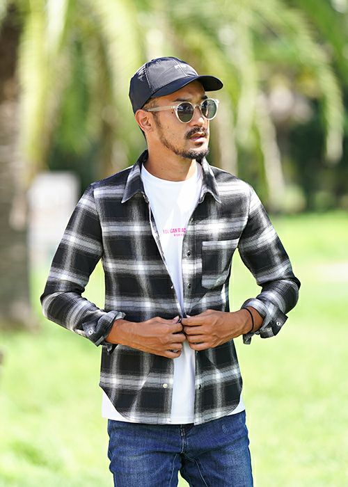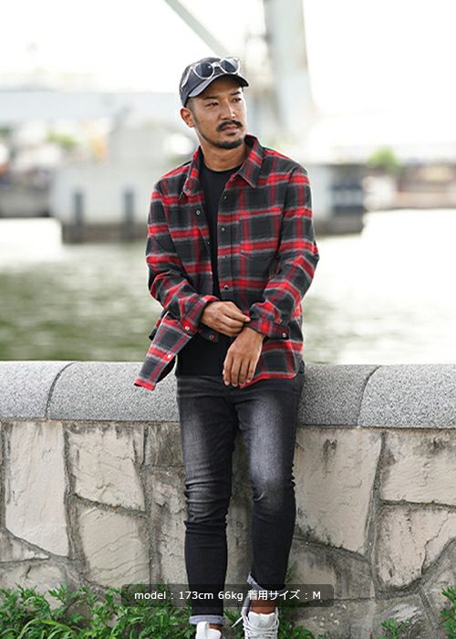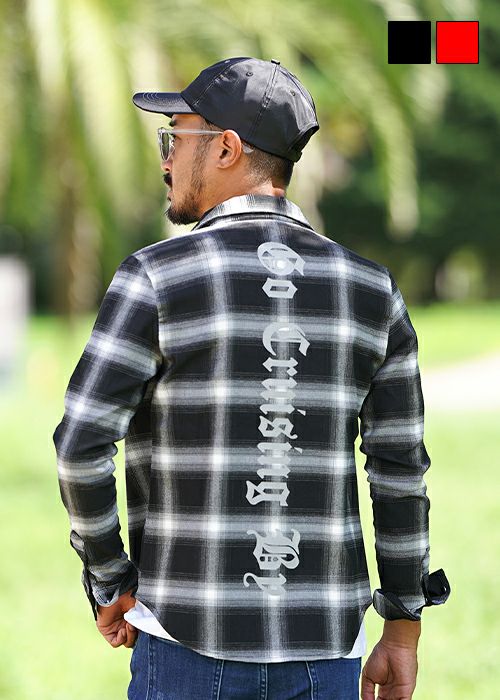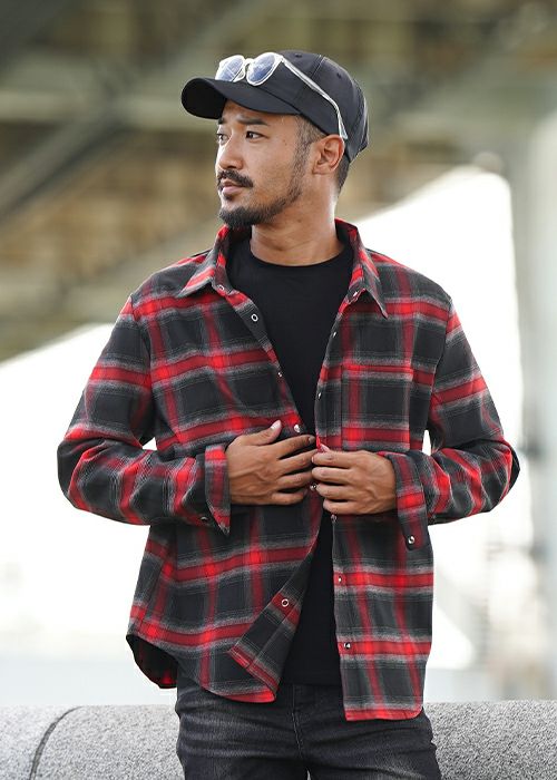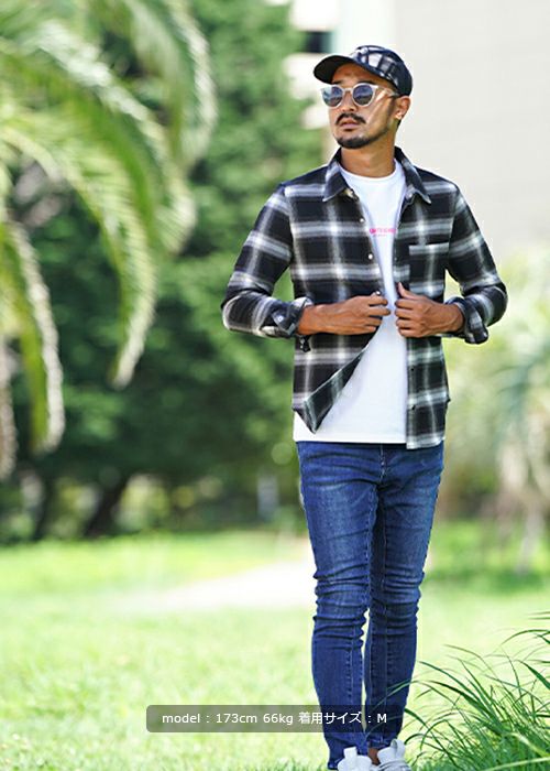 O.Eチェックロングシャツ