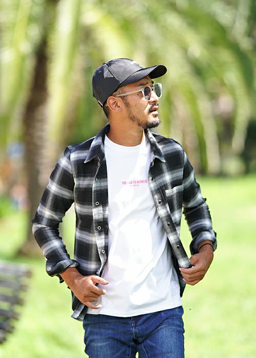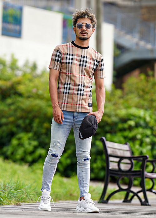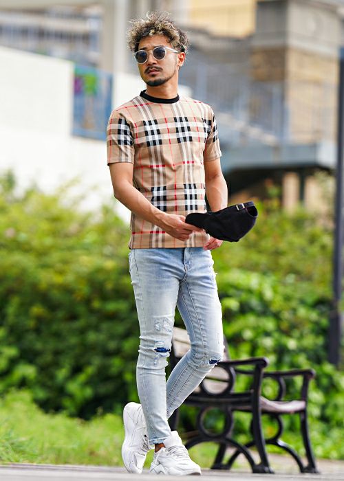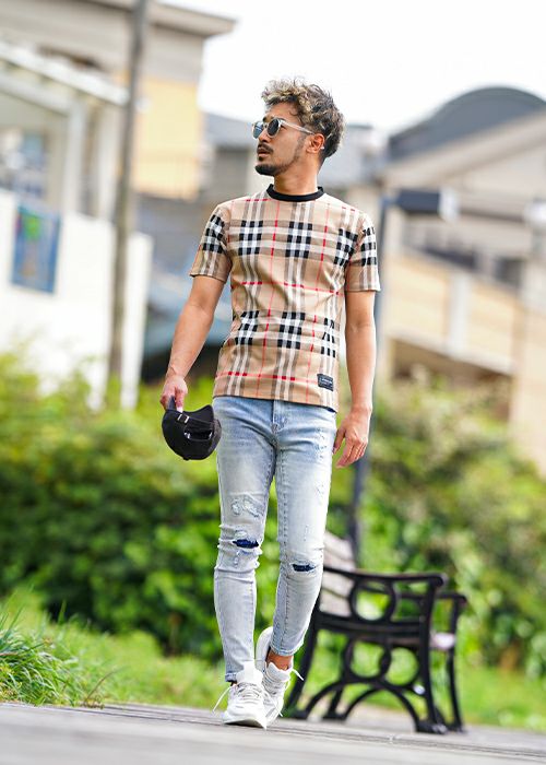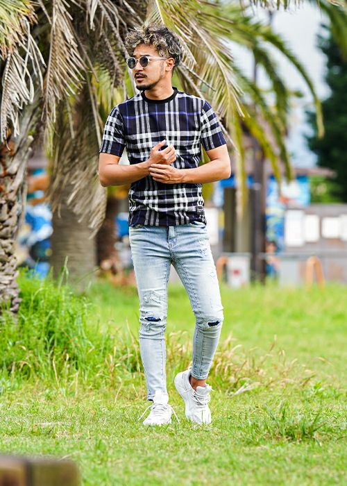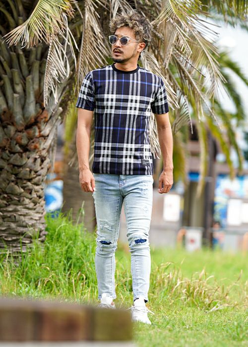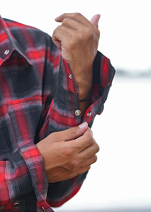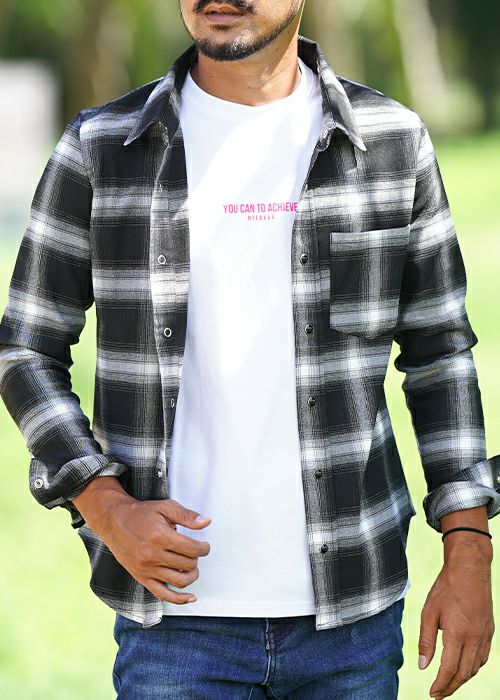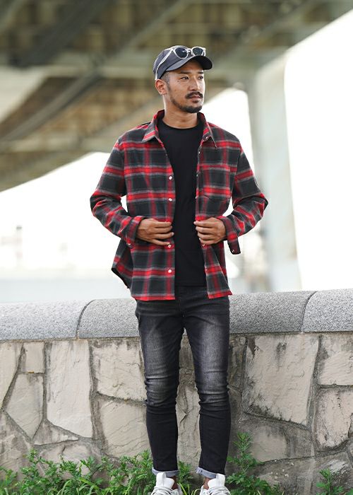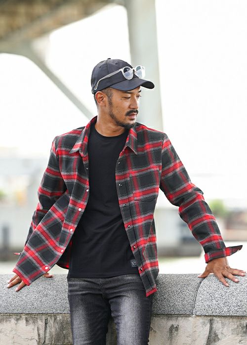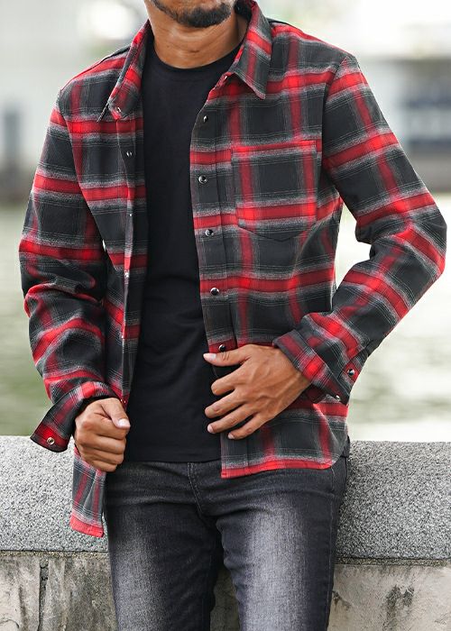 O.Eチェックロングシャツ