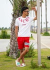 RTEG CROSS BOARD SHORTS adamsJUGGLERの水陸両用ショートパンツ。 裏地はメッシュが施され海でも街でも使えるアイテム。 一版でデザインされたリフレクターロゴがポイントです。 夏に映える新色の赤色も登場! ゴム入りのウエストで、ノンストレスなはき心地に。 キッズサイズもございますので、親子でリンクコーデも楽しめるアイテムです。 adamsJUGGLERのオリジナルブランド【RetroEngine】 アメカジをベースとした中に、トレンドと遊び心を取り入れたワードローブを提案するブランドです。 ※セール期間中にてご注文頂いた方は、返品は致しかねます。 ご了承くださいませ。 ※通常価格にてご購入の方は、お届けから7日以内までは、サイズの変更が可能です。