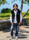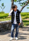 RTEGクロス&BRベストキッズ(RTEG CROSS&BR VEST kids) adamsJUGGLERのKidsライン。 いつものおしゃれに、ちょっと特別なアクセントを加えたいキッズにぴったり! 「RTEG Trico&R VEST」はそんな願いをかなえる一着です。 ほどよいツヤのある素材が、カジュアルなコーデにちょっぴり上品さをプラス。 前にはロゴでできたクロスデザイン、後ろには大きなアーチロゴが入っていて、どこから見てもかっこいい! ロンTやパーカーの上にサッと羽織るだけで、秋冬のスタイルがぐっとおしゃれに変身。 元気いっぱいのキッズにも、おしゃれを楽しみたいパパやママにもぴったりのアイテムです。 しかも別売りで大人サイズもあるから、親子でおそろいコーデも楽しめちゃいます。 シンプルだけど、普通じゃない。みんなの注目を集める、そんなベストです。 adamsJUGGLERのオリジナルブランド【RetroEngine】 アメカジをベースとした中に、トレンドと遊び心を取り入れたワードローブを提案するブランドです。 ※セール期間中にてご注文頂いた方は、返品は致しかねます。 ご了承くださいませ。 ※通常価格にてご購入の方は、お届けから7日以内までは、サイズの変更が可能です。