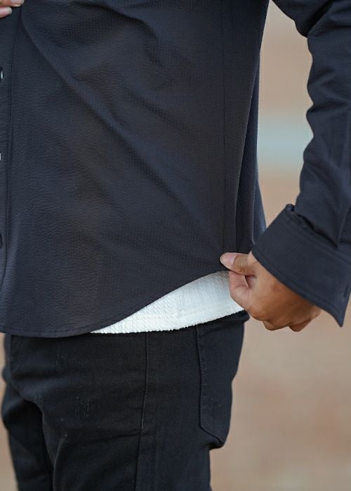 24/シアサッカーロングシャツ