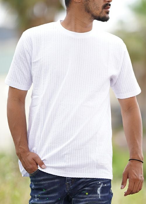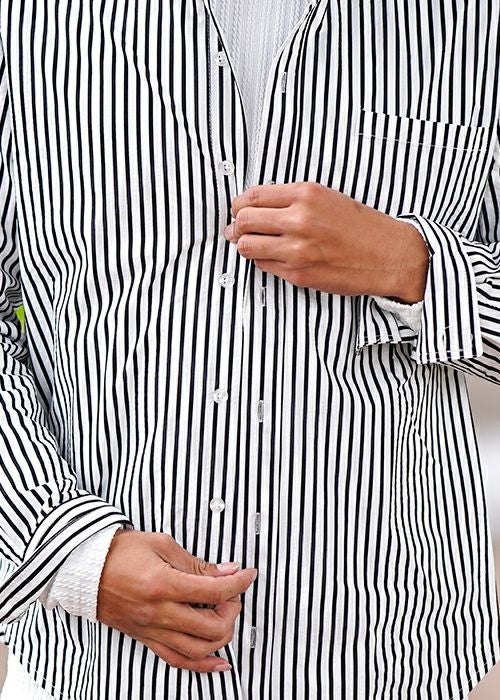 24/ストライプシアサッカーロングシャツ