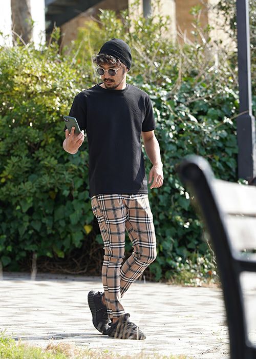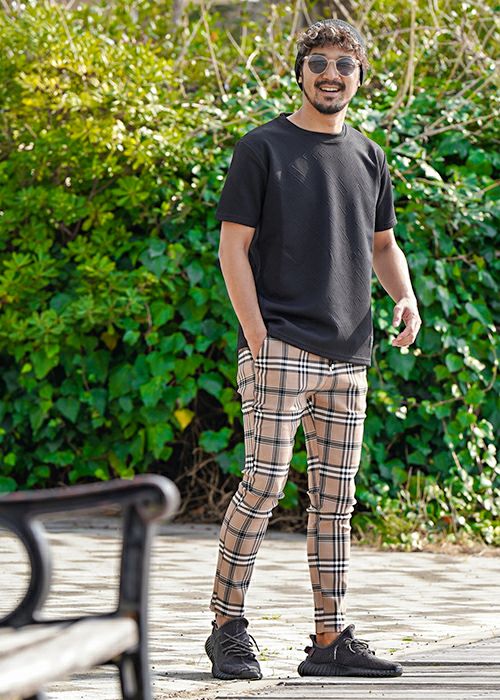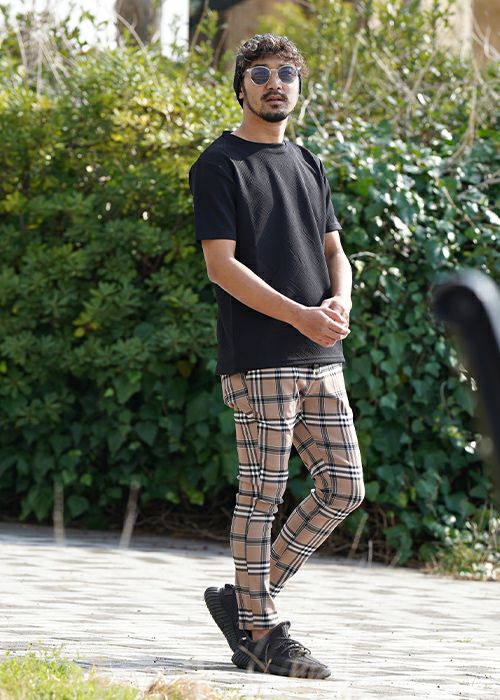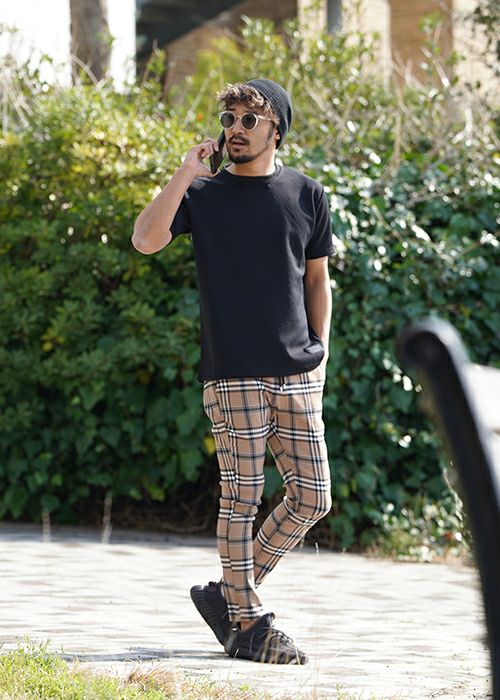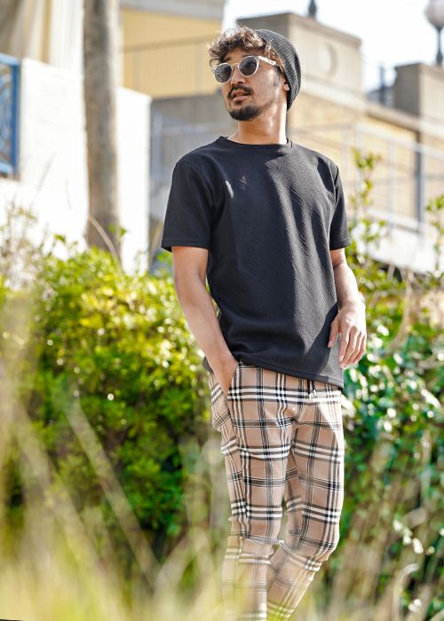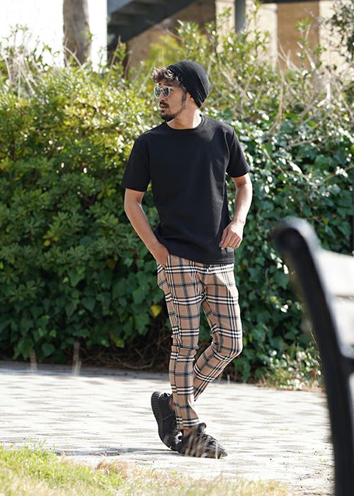 RTEGブラックラインチェックパンツ