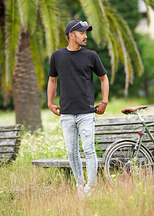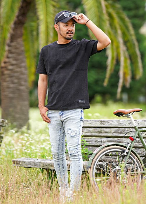 リファインドダメージブラックデニムロングパンツ