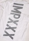 IMP XXX L/TEE リフレクターを使用した、存在感あるビッグロゴ。 フロントはシンプルなデザインでインナー使いもしやすく、 1枚着になるとバックのデザインが主役になる2面性のあるロンT。 ※お届けから7日以内までは、サイズの変更が可能です。