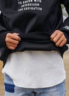 PASSIONATE PULL/SW ウィムロスからまるでウェットスーツのような滑らかさと少し光沢感のある素材のスウェットが登場。 フロントはシンプルにぷっくりしたシリコンロゴでインナーとしても使いやすい1枚。 M,Lの2サイズ展開でゆったりと着用いただける、ストリートテイストのコーデやワンマイルウェアとして使える万能アイテムです! ※お届けから7日以内までは、サイズの変更が可能です。