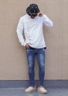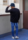 バーティカルR.Sロンティー(Vertical R.S L/Tee) シンプルでありながら華やかなデザインの「Vertical R.S L/Tee」。 ベーシックなブラックとホワイトの2色展開で、どんなコーディネートにも馴染みやすいまさに万能アイテム。 注目すべきは右肩から大胆にあしらわれたロゴ。 キラリと輝くラインストーンがシンプルなデザインに華やかさをプラスし、日常のスタイルにアクセントを加えてくれます。 リブ編みの袖でぴったりフィット感もあり、寒い日でも暖かく心地よい着心地が続きます。 普段のカジュアルなコーディネートに合わせやすく、どんなシーンでも自分らしさを表現できる一枚です。 adamsJUGGLER(アダムスジャグラー)のオリジナルブランド【RetroEngine】(レトロエンジン) アメカジをベースとした中に、トレンドと遊び心を取り入れたワードローブを提案するブランドです。 ※セール期間中にてご注文頂いた方は、返品は致しかねます。 ご了承くださいませ。 ※通常価格にてご購入の方は、お届けから7日以内までは、サイズの変更が可能です。