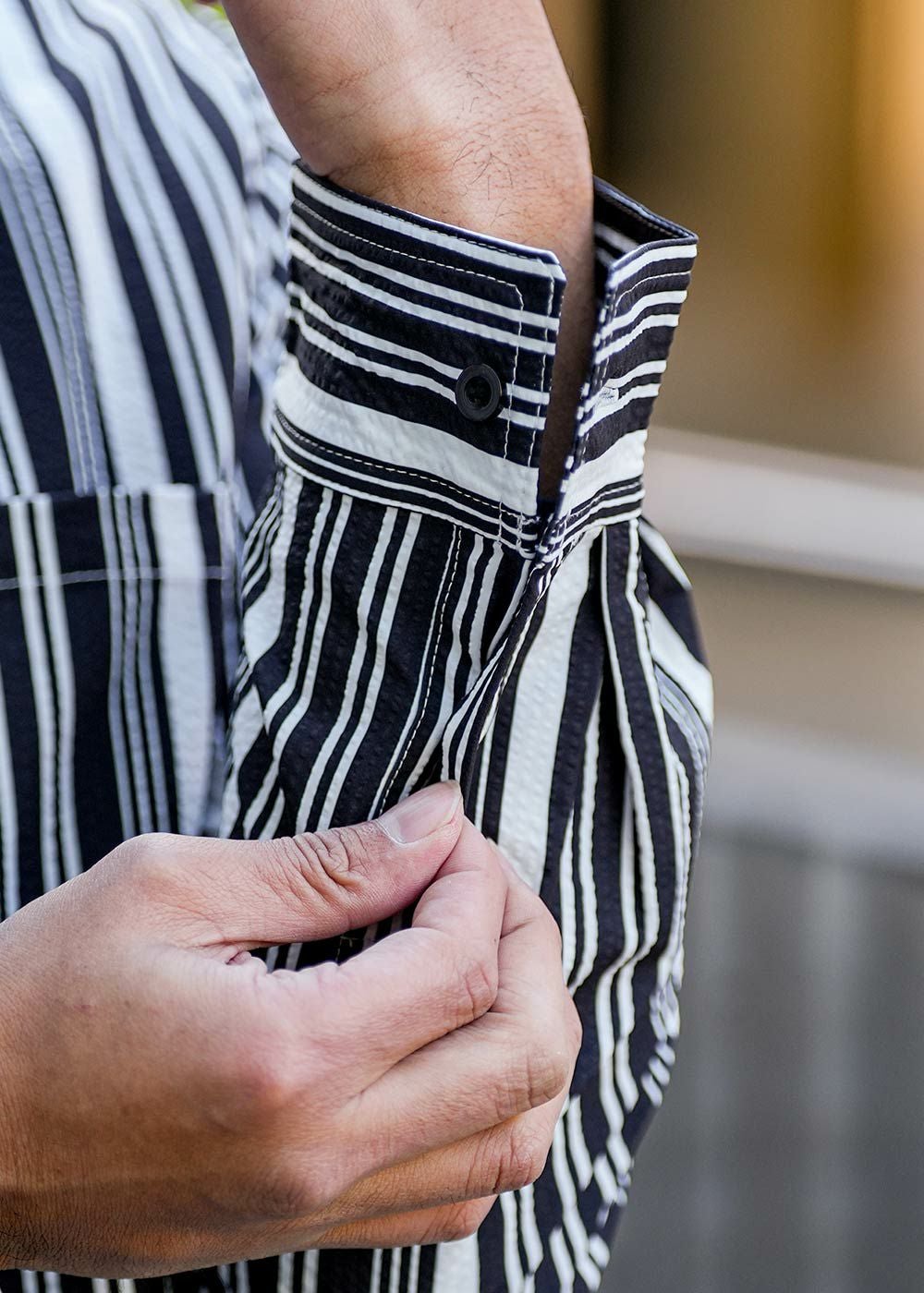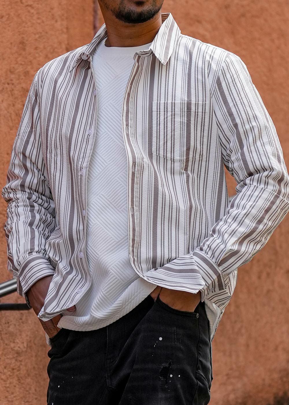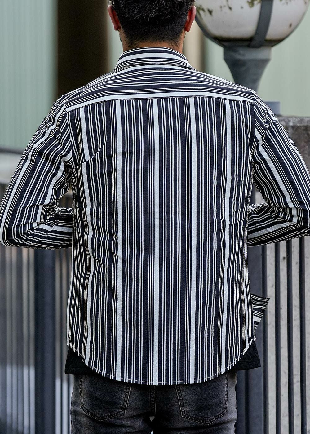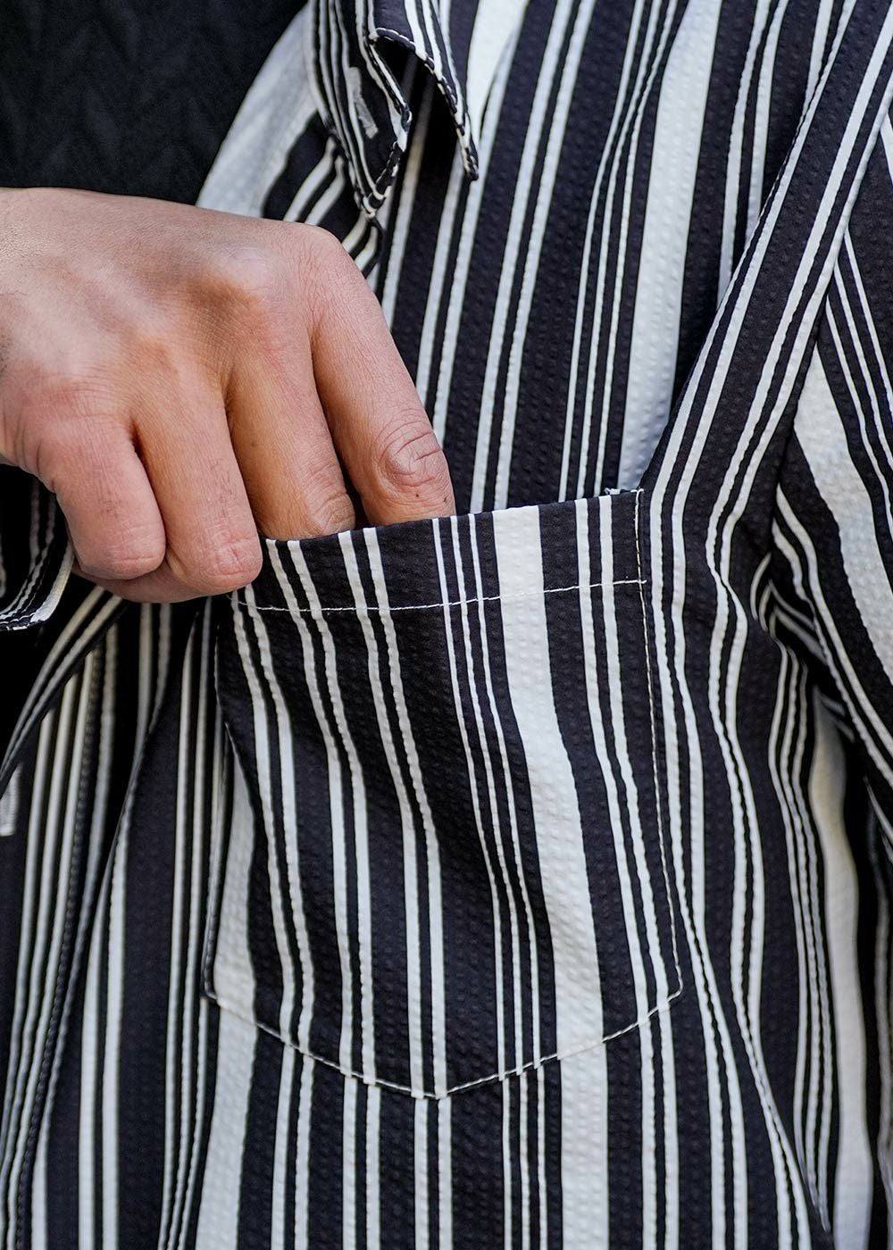 マルチストライプシアサッカーロングシャツ