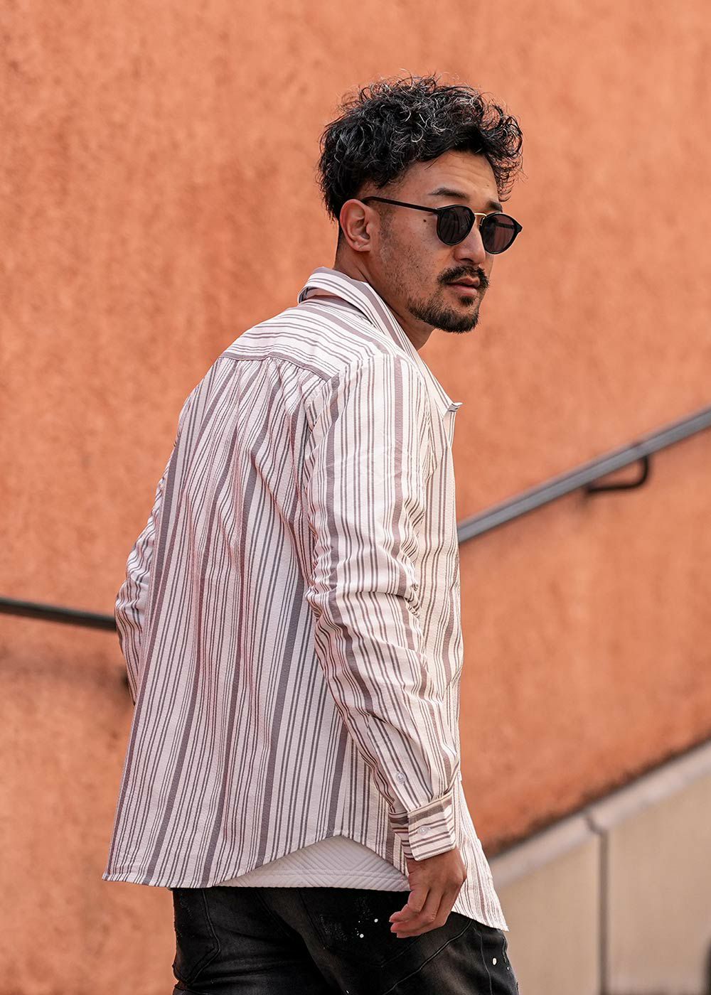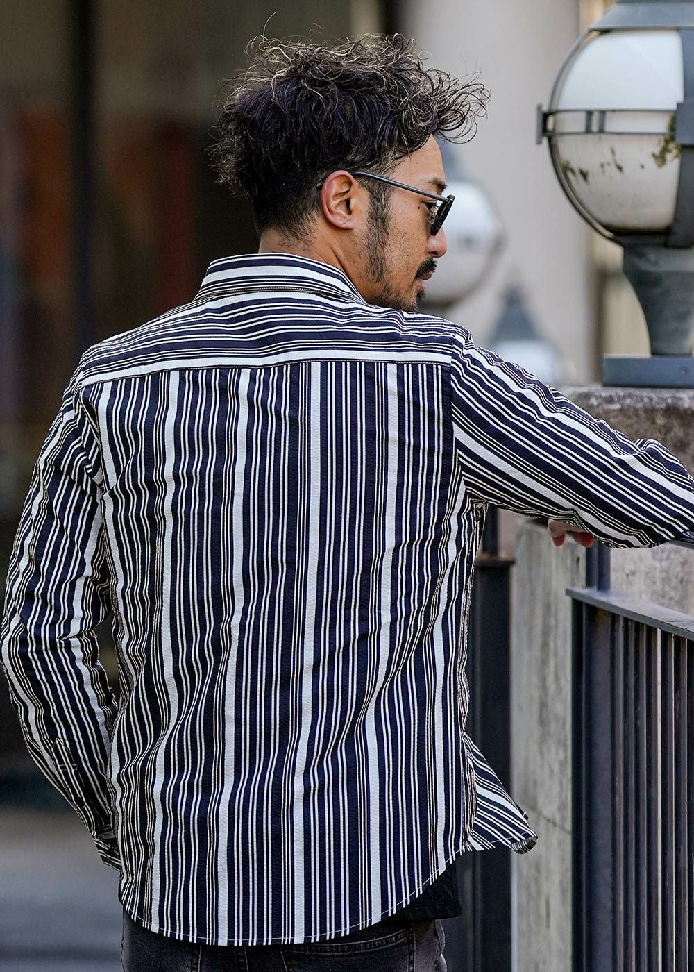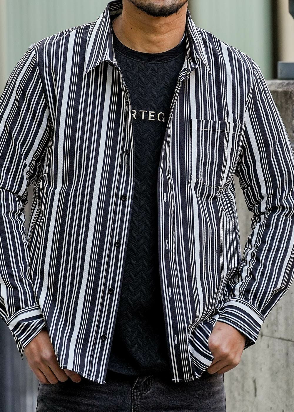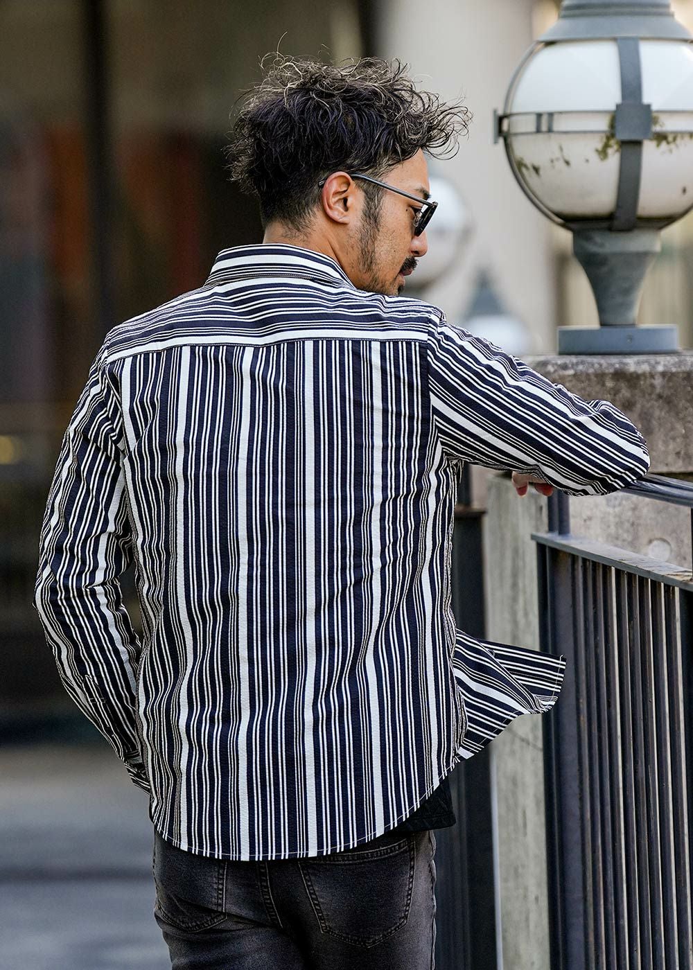 マルチストライプシアサッカーロングシャツ