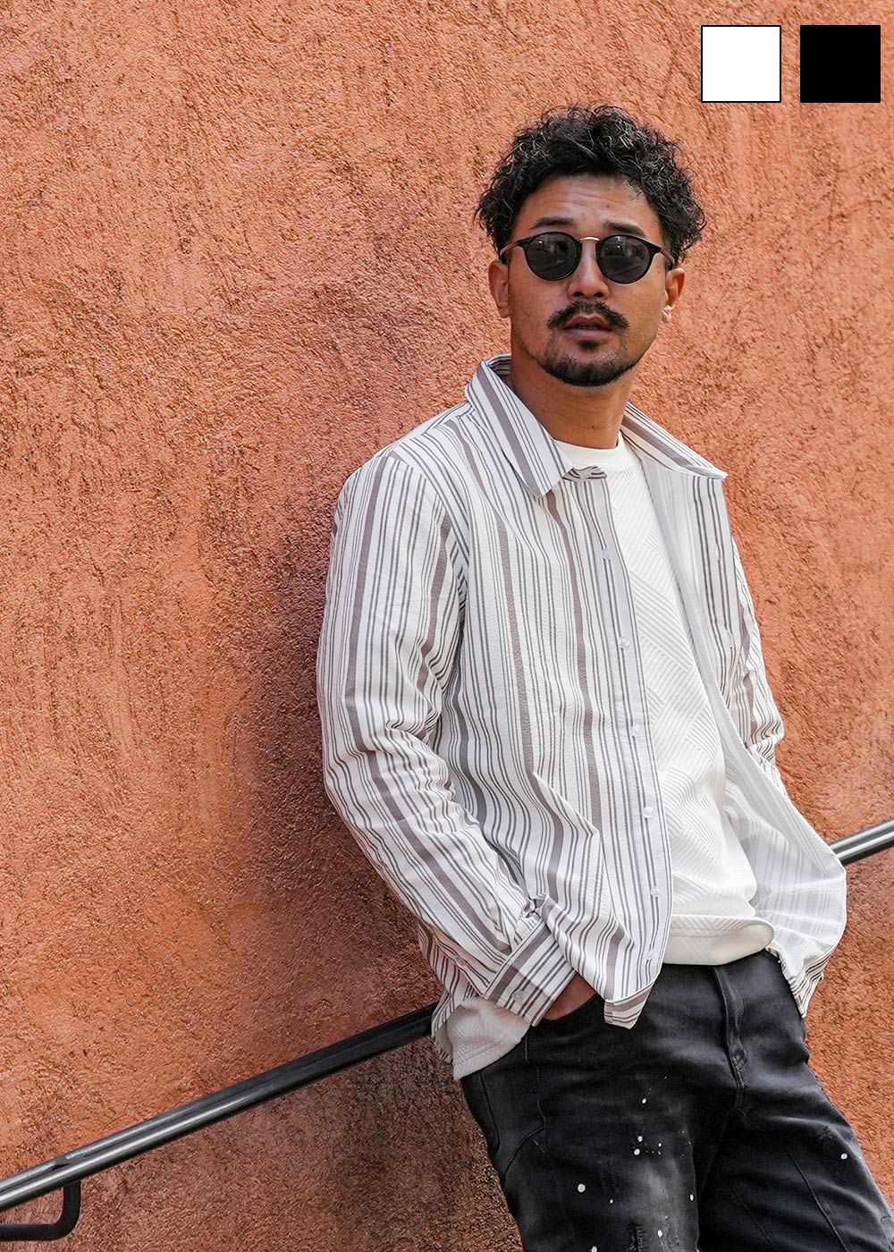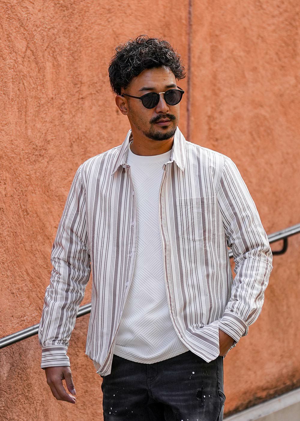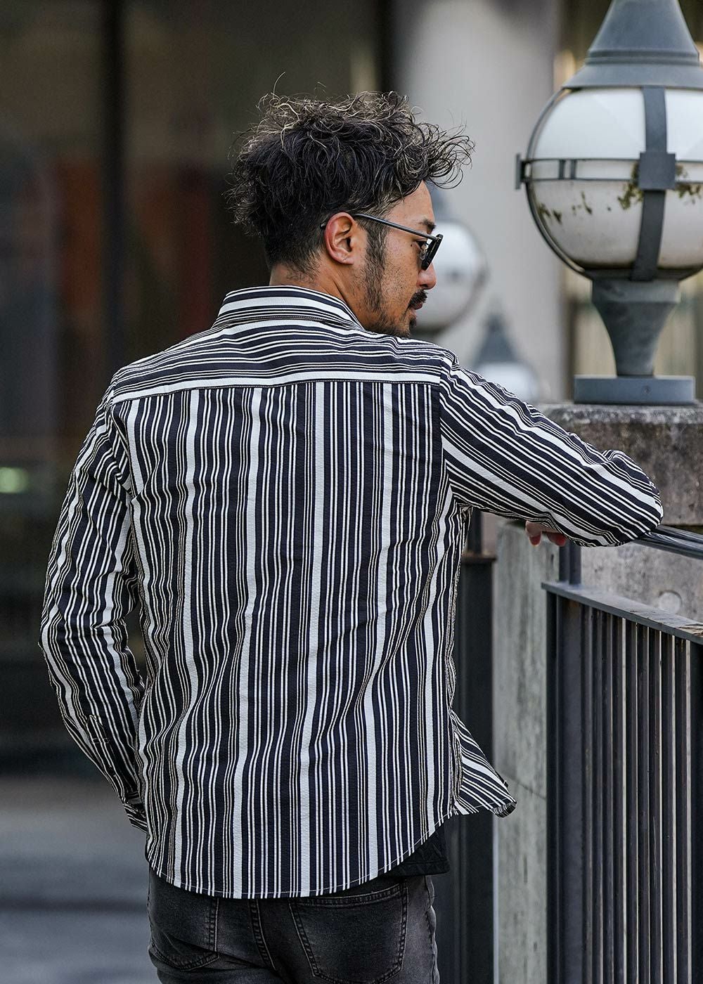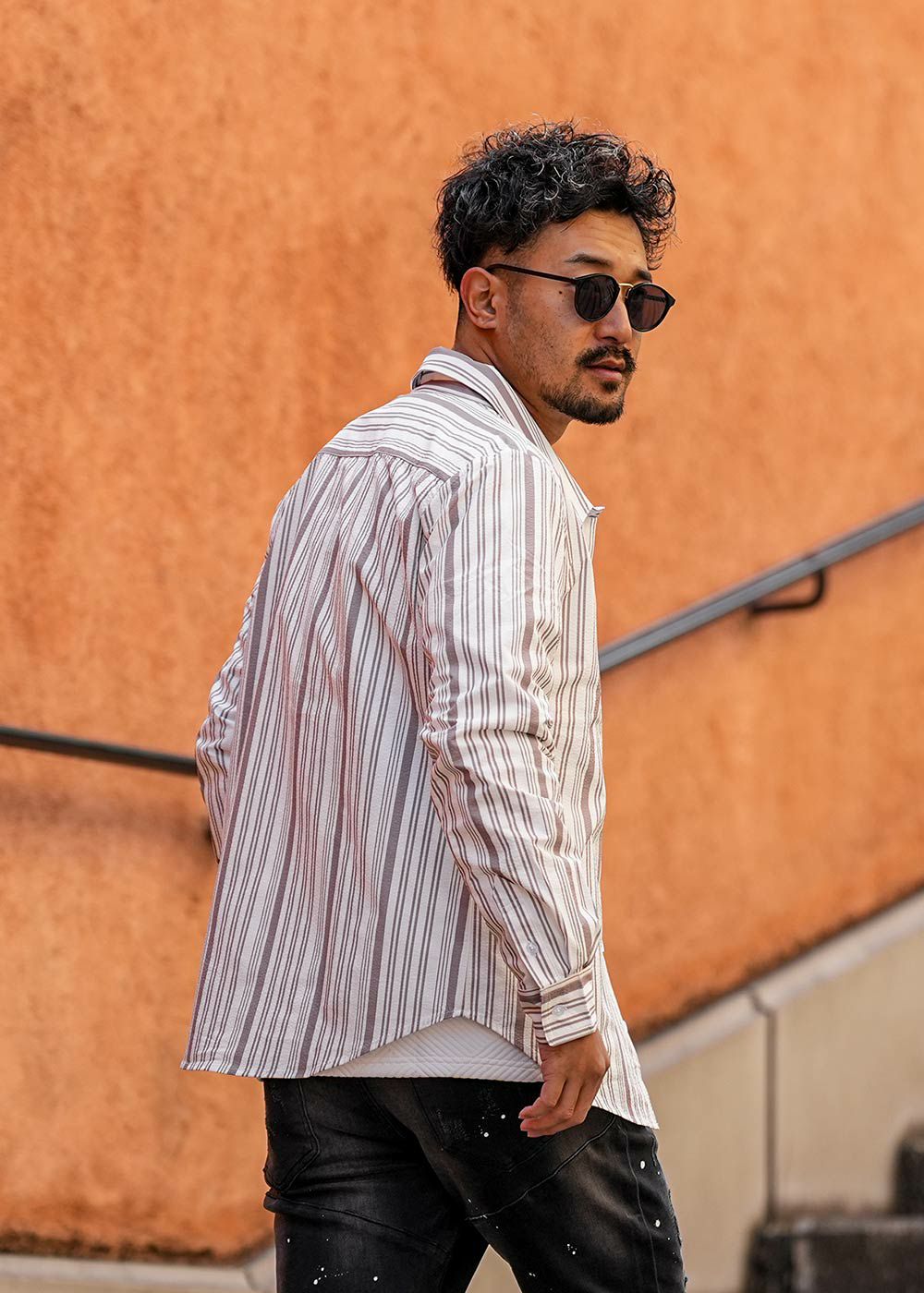 マルチストライプシアサッカーロングシャツ