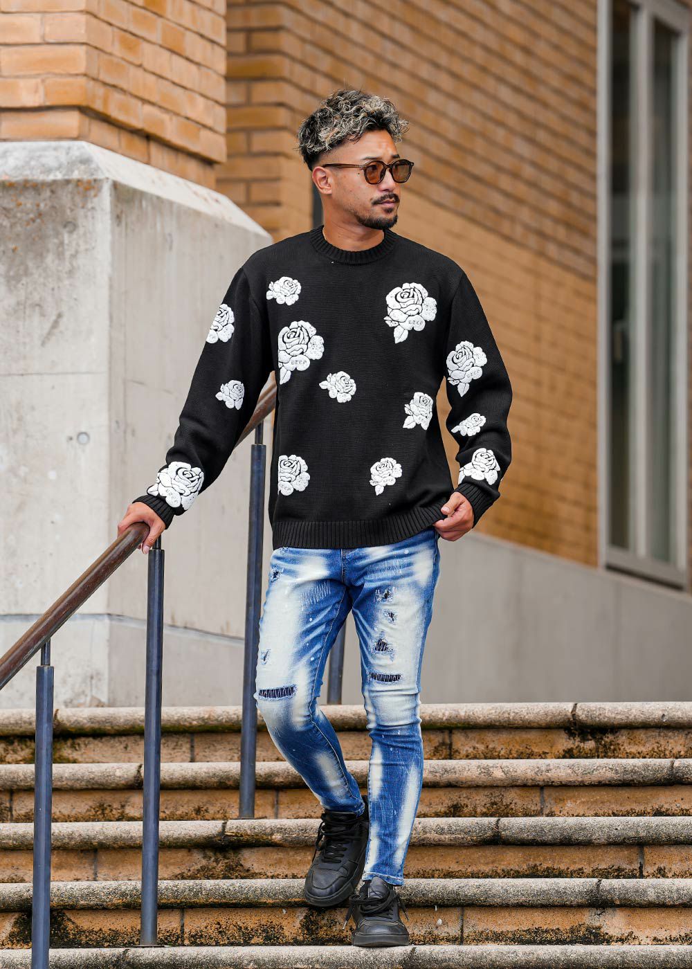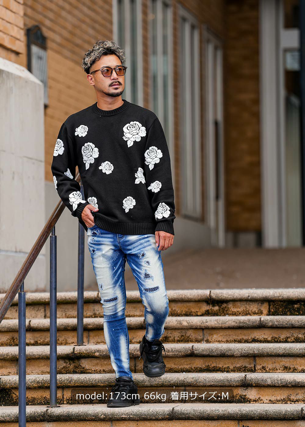 RTEGローズフォームプリントニット
