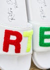 RTEG CHENILLE SANDAL RTEGからリラックス感のあるサンダルが登場!! カラフルなRTEGの相良刺繍がアクセントになり、コーディネートに彩りを与えてくれるアイテム。 海はもちろん、是非タウンユースとしても欲しいサンダルです。 ※お届けから7日以内までは、サイズの変更が可能です。