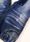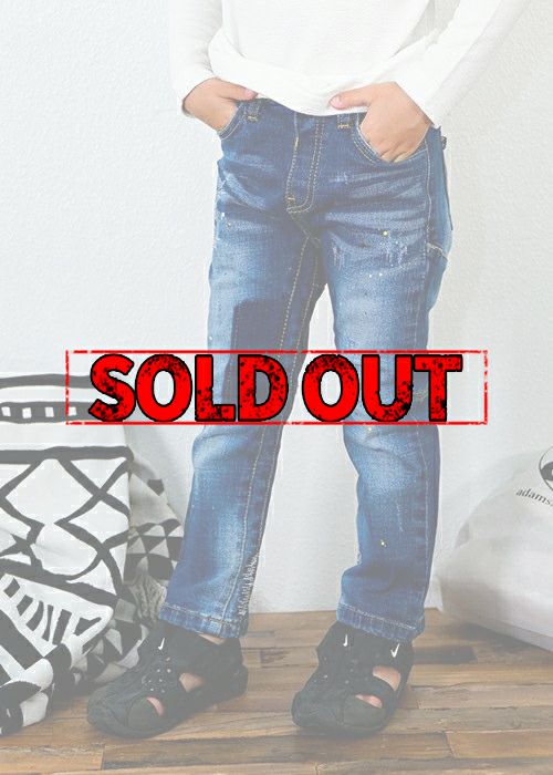 KIDS PAINT DENIM PT ウエスト部分はゴムになており、また全体にストレッチがきいているので着脱しやすいKIDSパンツです。 履くだけでお洒落に見えるシルエットにペイントのデザインが可愛いアイテムです。 親子でリンクコーデにもおすすめです。 ※お届けから7日以内までは、サイズの変更が可能です。