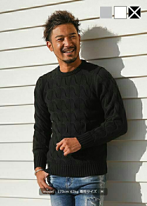 【SALE】シックケーブルラウンドニット