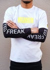 アームサポーターLONG RTEGアームサポーターが登場! 入れ墨やタトゥーの露出を抑えたい時にお使いいただけるRTEG FREAKの文字がリフレクターで入ったアームサポーターです。 腕全体を中心方向に 圧迫することにより、筋肉の無駄な揺れと腕の動きを軽減させ、パフォーマンスをサポートします。 フリーサイズでロングタイプとショートタイプからお選びいただけます。 ユニセックスタイプ(男女兼用)