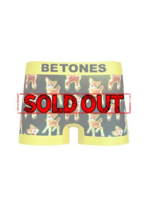 BETONES FUNTIME キュートなバンビちゃん!レトロなイラストが可愛さを強調しています♪ 【BETONES】 最新技術によりあらゆる体型にフィットする抜群の伸縮性が実現したフリーサイズとソフトな肌触りに加え、 吸汗速乾機能の糸を仕様した機能素材と耐久性により、 日常着としてだけではなく、スポーツや多様なシーンにも対応可能な新感覚アンダーウェアです。 ※アンダーウェアの為、返品交換は致しかねます。ご了承くださいませ。