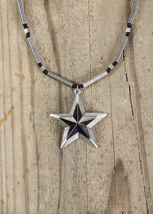 Silver Black Stone Star Necklace