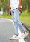 L.C.D.R Denim L/PT RTEG定番のスタイリッシュデニムが登場! ライトカラーのインディゴに程よいダメージ感とペイントが施され、爽やかなコーデにマッチする1枚。 ウエストはゴムが入っており、ストレス無く着用いただけます。 細身のスキニーシルエットでコーディネートできるアイテム。