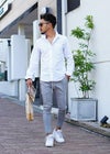 23/SEERSUCKER L/SH メインとなる素材はシアサッカー、波のような縞ができていてシワになりにくい特徴があります。 春夏らしい生地感が涼し気に大人リゾートを演出できるアイテム。 サラッとした着心地で爽やかな印象のある 大人っぽさを感じ取れる1枚です。 ※セール期間中にてご注文頂いた方は、返品は致しかねます。 ご了承くださいませ。 ※通常価格にてご購入の方は、お届けから7日以内まではサイズの変更が可能です。