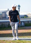 RTEGブラックレタースウェットパンツ