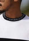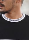中央と首元・袖口に施された白黒のロゴが大人っぽい印象を与えてくれ、他とは違う一枚でスタイリングを楽しめます。