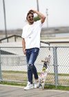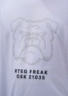 L.S DOG TEE シンプルな着こなしが楽しめるTシャツが新登場! ラインストーンで施されたブルドッグが、インパクトがありつつ愛嬌もあり、可愛らしいアイテムになりました! シンプルな2色展開で、使いやすさ抜群の一枚です!