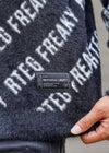 RTEG/フリーキーモヘアニット(RTEG/FREAKY Mohair knit) シンプルだけど、どこか個性的な一枚である「RTEG/フリーキーモヘアニット」。 ブラックとホワイトの2色展開で、見た目だけでなく着心地も抜群です。 特徴的なのは全面に施された「RTEG FREAKY」のロゴ。 モノトーンなので派手になりすぎずアクセントを加えてくれるのでオシャレ度がぐっとアップします。 そしてモヘア風素材を使用しているので毛足がふんわりと長く手触りが心地よく暖かい今の季節にぴったりのアイテムです。 また着る人を選ばないデザインなので10代の若者から、20代・30代の大人まで、幅広い世代に性別問わず誰でも楽しめる一枚です。 ※セール期間中にてご注文頂いた方は、返品は致しかねます。 ご了承くださいませ。 ※通常価格にてご購入の方は、お届けから7日以内までは、サイズの変更が可能です。