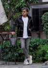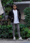 ブラックS.Dデニムロングパンツ(Black S.D Denim L/PT) 「ブラックS.Dデニムロングパンツ」はスタイリッシュで履き心地の良いデニムパンツです。 ブラックのカラーがシンプルでどんなトップスとも合わせやすいためシーンを選ばず活躍します。 右太ももと左膝部分にはダメージ加工が施されており少しロックな雰囲気をプラス。 またテーパードシルエットなので足元に向かってすっきりとした印象を与え、スタイルアップ効果もバッチリ。 10代から20代、30代、40代、50代の幅広い年齢層にマッチし、カジュアルからちょっとしたおしゃれまで様々なコーディネートに活躍します。 秋冬のコーディネートに取り入れやすく、デイリーに使える万能アイテムです。 adamsJUGGLER(アダムスジャグラー)のオリジナルブランド【RetroEngine】(レトロエンジン) アメカジをベースとした中に、トレンドと遊び心を取り入れたワードローブを提案するブランドです。