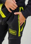 RTEGネオン&Eジップスウェットパンツキッズ(RTEG Neon&E ZIP SWPT kids) 「RTEGネオン&Eスウェットパンツキッズ」は子どもたちの動きやすさとおしゃれを両立させた一枚。 ブラックとグレーの落ち着いたカラーに、蛍光イエローの止水ジップがシンプルでありながらもインパクトを与えるデザインです。 左太ももにも蛍光イエローのロゴがさりげなくポイントとなり元気な雰囲気を演出。 フーディーと合わせてお揃いのコーディネートが出来るのでリラックスしたシルエットで遊びやお出かけにもピッタリです。 秋から冬の寒い時期に、子どもたちを温かくおしゃれに保ちます。 *同素材でセットアップのパーカーのご用意もございます。 また、大人サイズもご用意しており親子でリンクコーデが出来るアイテムです。 ※セール期間中にてご注文頂いた方は、返品は致しかねます。 ご了承くださいませ。 ※通常価格にてご購入の方は、お届けから7日以内までは、サイズの変更が可能です。