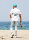 RTEGO/Eアレグレティー(RTEG O/E ALEGRE TEE) この夏、どこか差をつける一枚を探しているなら、迷わず「RTEG O/E ALEGRE TEE」をチェック。 オールドイングリッシュのロゴデザインが、フロントとバックに大胆にあしらわれていて、シンプルながらもしっかり目を引くデザインが特徴。クラシックな雰囲気を持ちつつ、現代的なエッジも感じさせるこのTシャツは、まさに“今”欲しいアイテムです。 素材は軽くて通気性が良いから、暑い夏でも快適に着こなせます。肌に優しいフィット感で、デイリーユースにぴったり。デザインがしっかりしているから、シンプルなボトムスと合わせるだけでコーデが決まります。 10代のストリート感満載のスタイルにも、20~30代のカジュアルでこなれた着こなしにも、さらには40代~50代の大人っぽいリラックススタイルにもぴったり。年齢を問わず、誰でも自由に楽しめる万能アイテムです。 これ一枚で、シンプルながらも自分らしさをアピールできる、そんなTシャツをこの夏のワードローブに加えてみて。