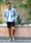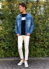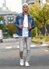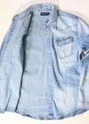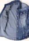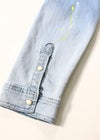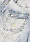 Paint Denim L/SH 爽やかで涼しげなアイスブリーチで初夏のデニムスタイルを楽めるadamsJUGGLERのシャツです。 形のキレイなタイトめに着こなせるサイズ感、全体的に施されたペンキを飛ばしたようなペイント加工風のプリントがアクセント。 ボディに合わせたメタル調のホワイトボタン使い、ヴィンテージを意識したウエスタンヨークデザインや フロントとの相性の良い胸ポケット使いなどにも拘った1枚に仕上がっております。 ※お届けから7日以内までは、サイズの変更が可能です。