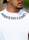 少しゆるめのサイズ感で、首元などエッジに施されたオールドイングリッシュデザインが無骨でワイルドな印象に。