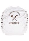 フロントとバック両面にプリントされたEVENFLOWの新しいロゴは、「ユルさ」「リラックス」を象徴するパームツリーと、「エッジ」「攻めの姿勢」を表現したライトニングをクロスさせたもの。 まさに、その両面を併せ持つEVENFLOWを象徴させるグラフィックです。