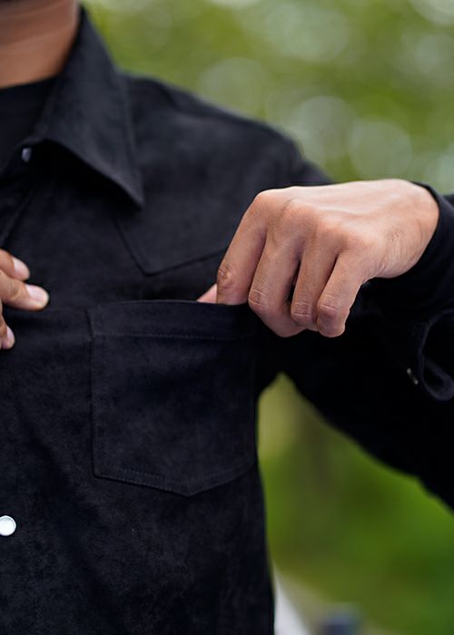 ストレッチスエードロングシャツ