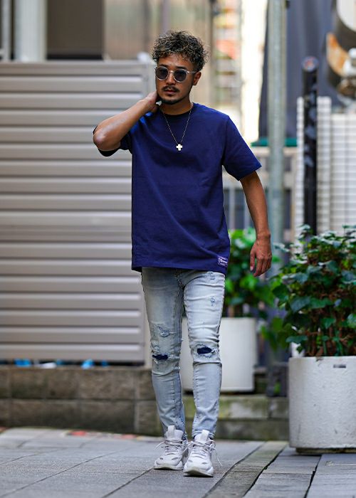 インディゴダメージリペアデニムロングパンツ