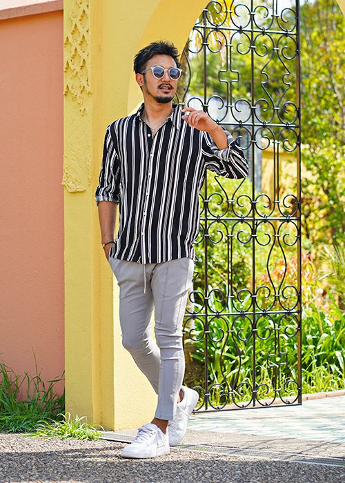 23クールストライプロングシャツ