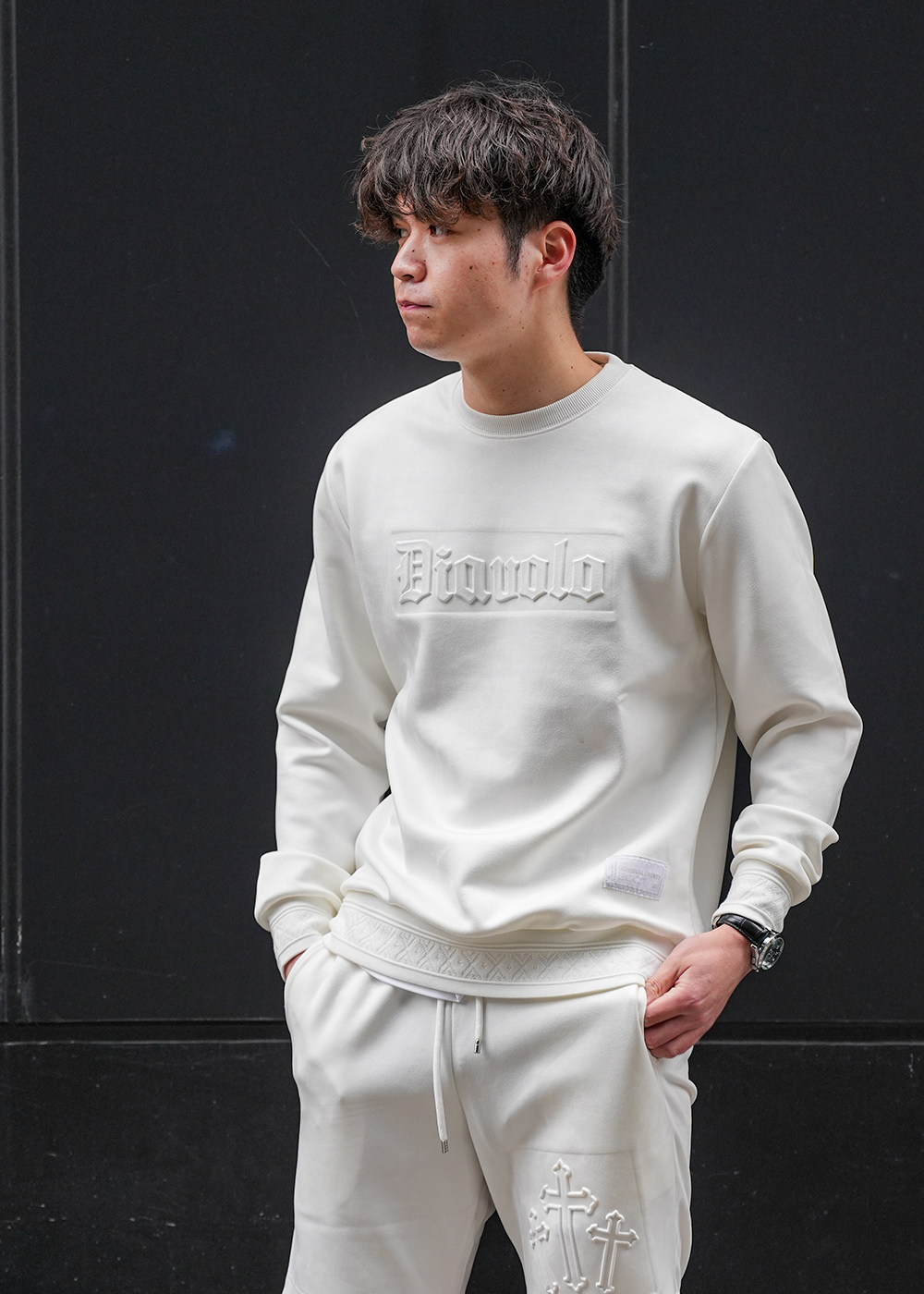 さりげなく入ったエンボス加工が、コーデにほどよい立体感をプラスしてくれるスウェット「RTEG S/Cross SW PULL」。