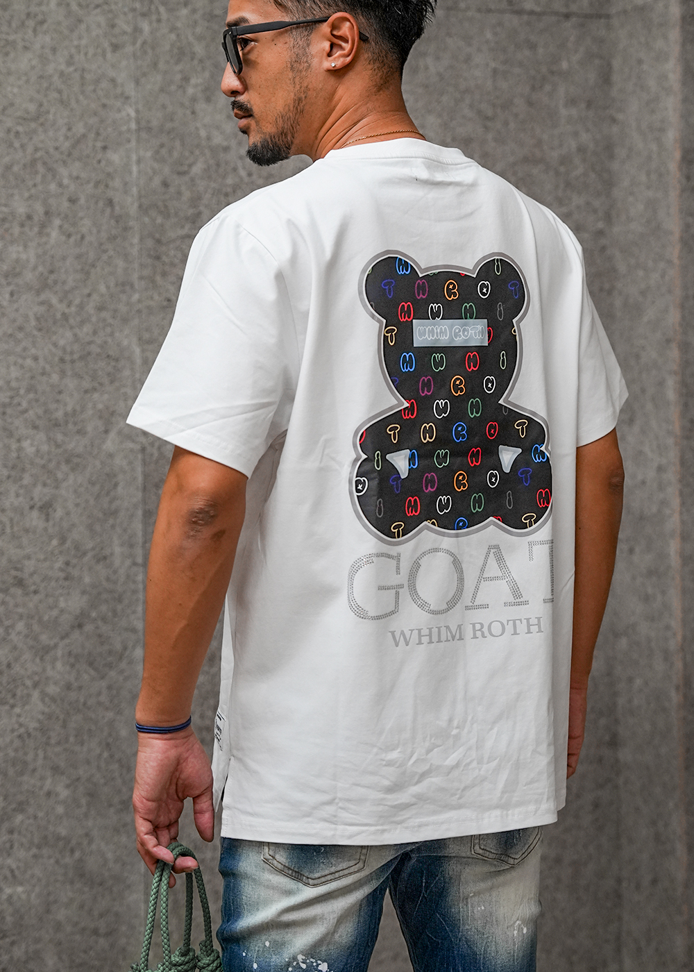GOATとクマ、2つの遊び心を一枚に。 「W/R GOAT Bear TEE」は、胸元にさりげないGOAT、背中には思わず振り返られるキュートなクマをデザイン。 前はシンプル、後ろで魅せる、そのギャップがクセになります。 カラーは使いやすいホワイトとブラック。 どんなコーデにもすっとなじみ、春夏の主役にも脇役にもなれる一枚です。 かわいさの中に、ちょっとした個性を。 友だちと会う日も、何気ない外出も、気分を少し上げてくれるTシャツです。