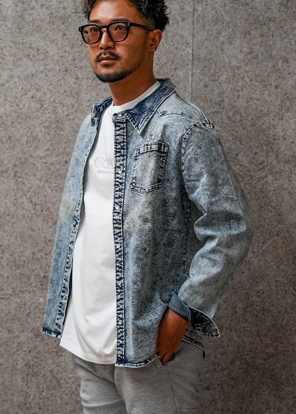 ケミカルウォッシュ加工がほどよくヴィンテージ感を演出し、着るだけでこなれた印象に。