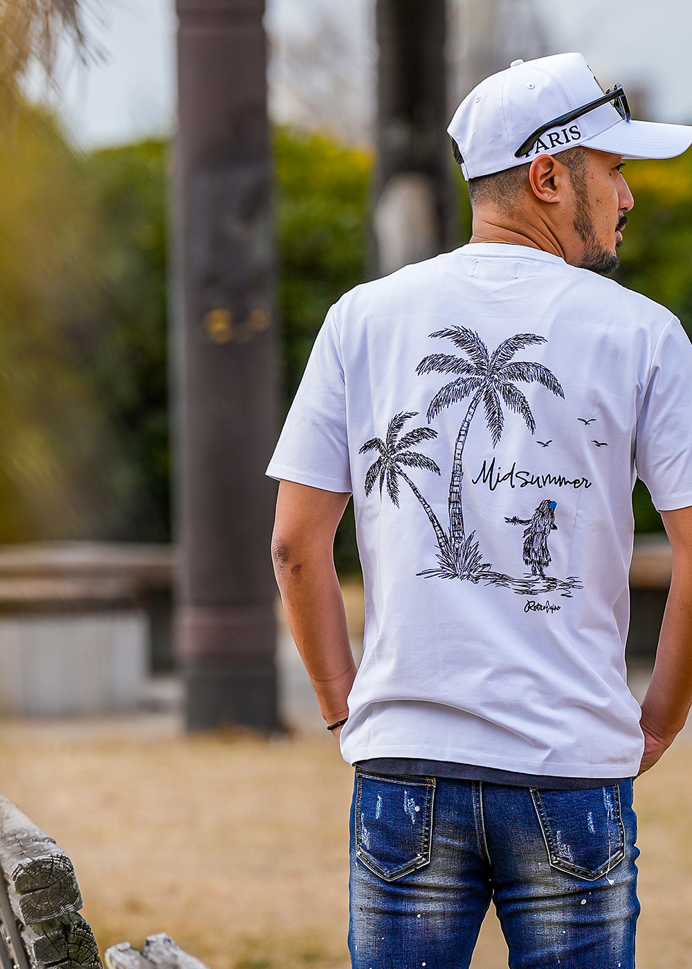 「RTEG Palm Tree&Girl TEE」は、背中に描かれた刺繍の女の子とパームツリーが、どこか物語を感じさせる一枚。シンプルなTシャツに、ふとした余白と遊びを残しています。