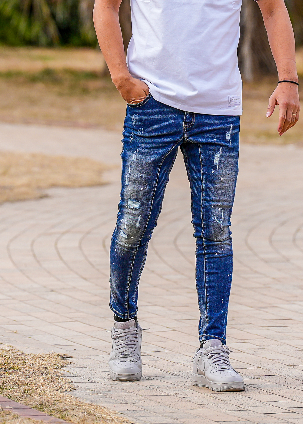 フロントには刺繍とラインストーンを組み合わせ、光を受けるたびに静かにきらめくアクセントをプラス。主張しすぎないのに、確実に印象に残るデザインです。