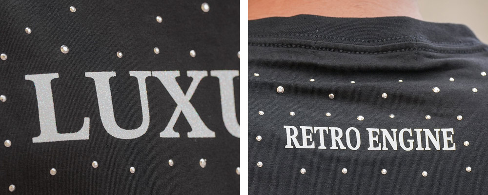 さらに、ロゴプリントにはラメをプラス。スタッズの輝きと重なり合い、どこから見ても主役級の存在感を放ちます。
