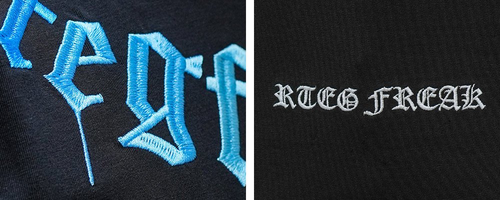 一番のこだわりは、フロントに施された贅沢な刺繍ロゴ。単なる一色ではなく、海や空を連想させる鮮やかなブルーのグラデーションに仕上げました。